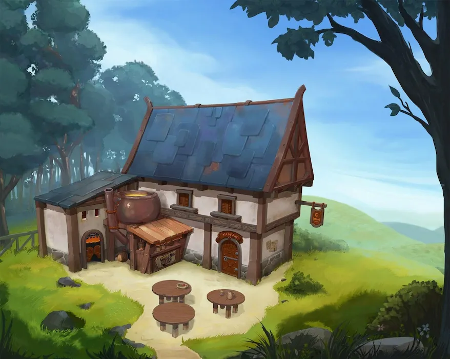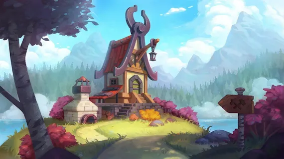 Важно! В дизайне окружения очень часто приходится уделять внимание архитектуре. Поэтому на курсе ты сосредоточишься в том числе на дизайне лендмарки (домика, башенки или небольшого замка) и поймешь, как вписать его в среду и создать цельную иллюстрацию как в дневном, так и в ночном освещении.