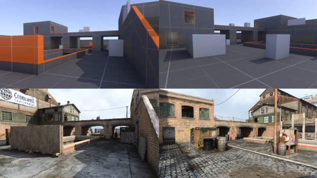 - оформление уровня — на этом этапе все примитивные формы, которые используются для обозначения предметов на уровне, убирают. Вместо них уже добавляются готовые объекты и предметы. В процессе художнику уровней предоставляют готовые предметы, текстуры и ассеты для работы. Но порой он может делать все сам — создавать UV-развертку предмета, отмечать материалы на нем, запекать карты и делать текстуры и перемещать все это на движок для дальнейшей настройки;