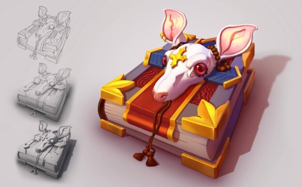 Например, отрисовка теней включает в себя падающие и собственные тени, а также оклюжен. Если мастер запутается и забудет про любой из этих видов, картинка не будет выглядеть завершённой. Поэтому рисовать тени нужно пошагово и сверяться с пайплайном на каждом этапе.
