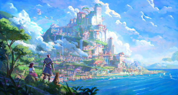 На изображении выше была задача сделать контраст огромных облаков и маленьких домиков. Также нужно было создать глубину — это получилось за счет нескольких домов на переднем плане.