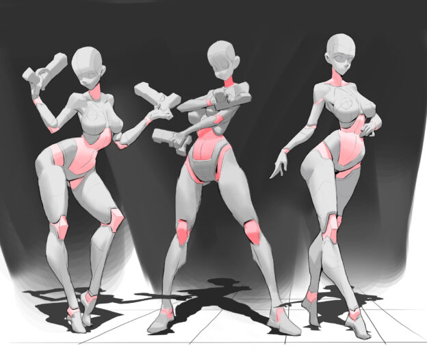 Рисование ног, идентично и рукам, строится на следующих этапах — поиск референсов, разметка на основе референса и базовых геометрических форм, а затем обрисовка: