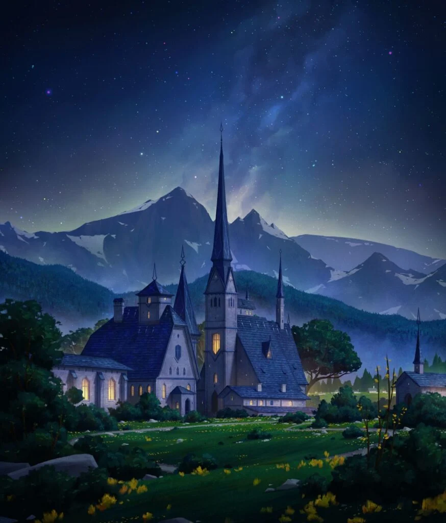 Взгляните на детали на этих артах — ночью в окнах горит свет, что говорит о том, что там живут люди. Днем в солнечную погоду эти люди выходят на улицу, чтобы насладиться прогулкой. В дождь все пустынно и таинственно, а при восходе солнца — полная тишина, как будто люди еще не проснулись. Всего четыре арта, но мы уже поняли многие детали.