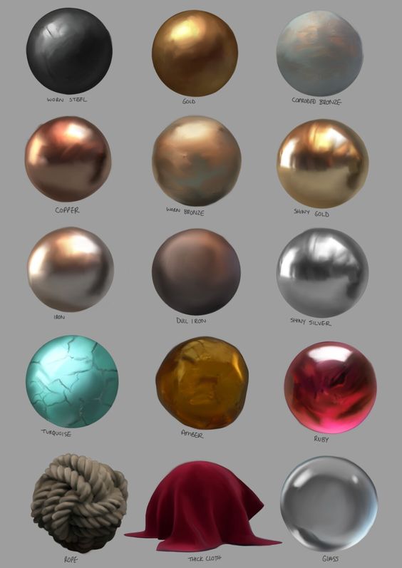 Такая отработка поможет сделать работы более качественными и покажет работодателю, что вы умеете передавать тот или иной материал или выделять разные объекты на арте, не сливая их.